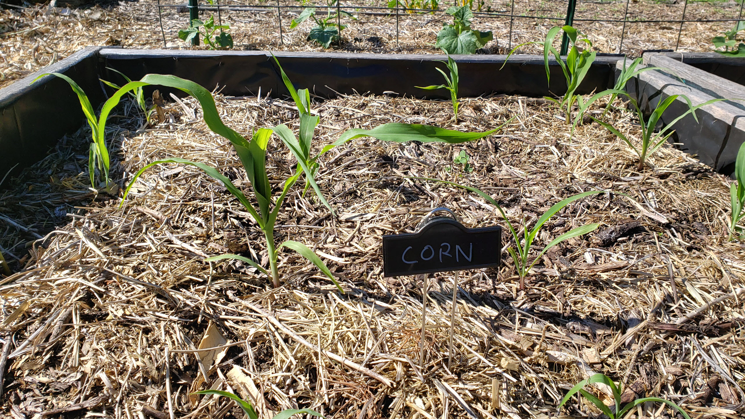 3 sisters patch (corn, squash, bean) planted by my youngest son Caleb. |
