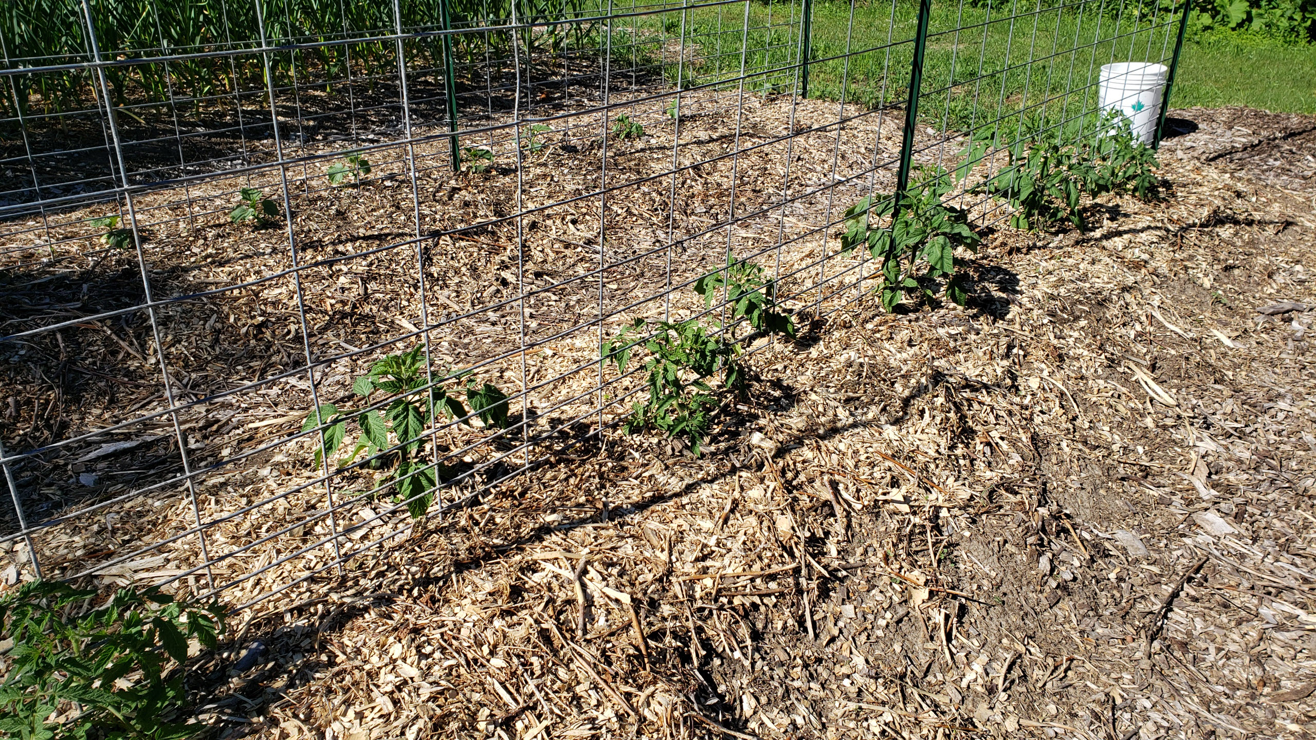 Tomatoes. This year I built trellis using galvanized cow panels this year because vertical strings failed to hold the massive tomato plants last year. |