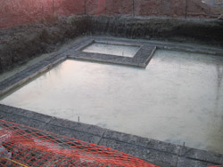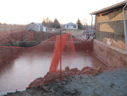 The concrete workers came the next day to lay the footings for the wall.