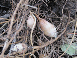 When its leaves turn yellow, it is time to harvest. Simply pull the whole plant out.