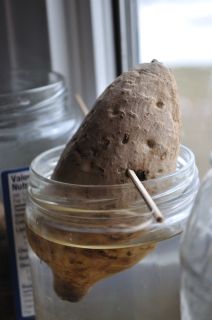 For the past 2 years I was unable to grow any sweet potatoes from my garden. However, I am not discouraged. This year, not only did I order 12 sweet potato slips from a farm, but I am also trying to start slips myself. You see, growing sweet potato is different from growing potato. You can tak a small potato and plant that in the soil. But you would have to start slips, or small shoots from a sweet potato in water, and then plant these slips in the soil.