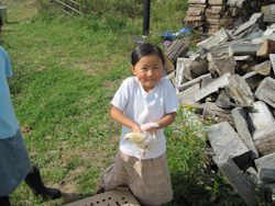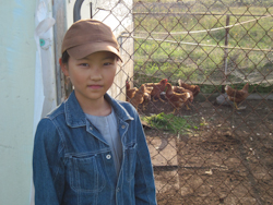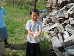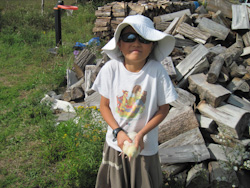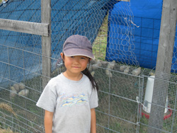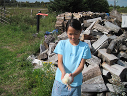 We ordered 25 meat birds this year. However it is not avilable until end of September. There were some cold nights and rain, so 3 of the baby chicks died. However, the rest of them are strong and like to catch grasshoppers. Sonia is my helper this year to bring the water and turn on the electrical fence.