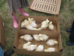 Again, we are going to raise some meat birds this year on the pasture. I put 2 extra wheels onto the mobile coop and have decided to use the tractor to pull it across the pasture when it comes to the end of a line, rather than manually tilt it up and push. The daily move is still done by hand. The electric fence is setup and we are waiting for the birds to arrive. Finally today is the day.