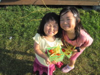 We had our first frost last week and today some areas north of GTA have light flurries. It is that time of the year again – winter. The only plants that’s left in the garden are mostly in the Brassica family – cabbage, kale, spinach. This year, I have enlisted help from Tiffany and Odelia in closing the garden: remove leftover plants and weeds, add some compost and cover the square with straw.