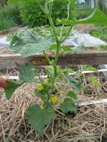 The cucumber starts to grow very well with flowers forming.