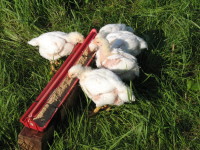 The chicken are almost 3 weeks now so we put them out on the pasture. However, the new energizer fails to work and I have to send it back to service, what a shame! This is just the second time I turn it on. I hope the electric fence will serve as a barrier in the mean time to keep out predators.