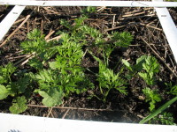 Swiss chard. The right one is sowed 3 weeks after the left one.