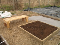 This is new 4×4 SFG for corn and the new cedar bench I just built. You can also order a new one from me 🙂