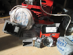 Electrical boxes, cables, switches, breakers, receptacles. |