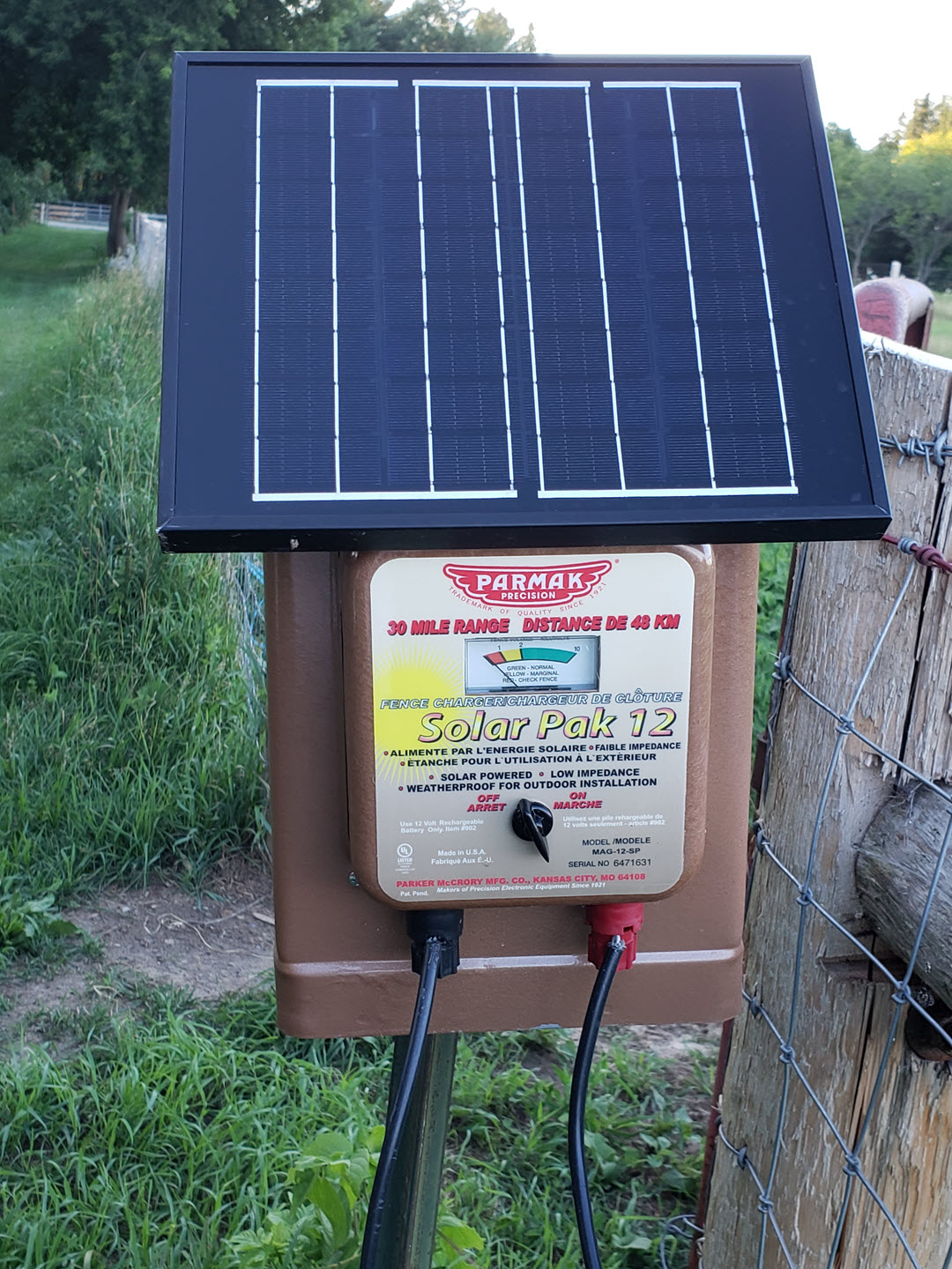 After building the Mobile Sheep Shed, the next step is to setup the electric fence for better pasture management. We sub-divide the 2 acre pasture into 4 smaller lots, using electric wire and step-in post. This year, I upgraded the charger into a “all-in-one” unit by Parmak.