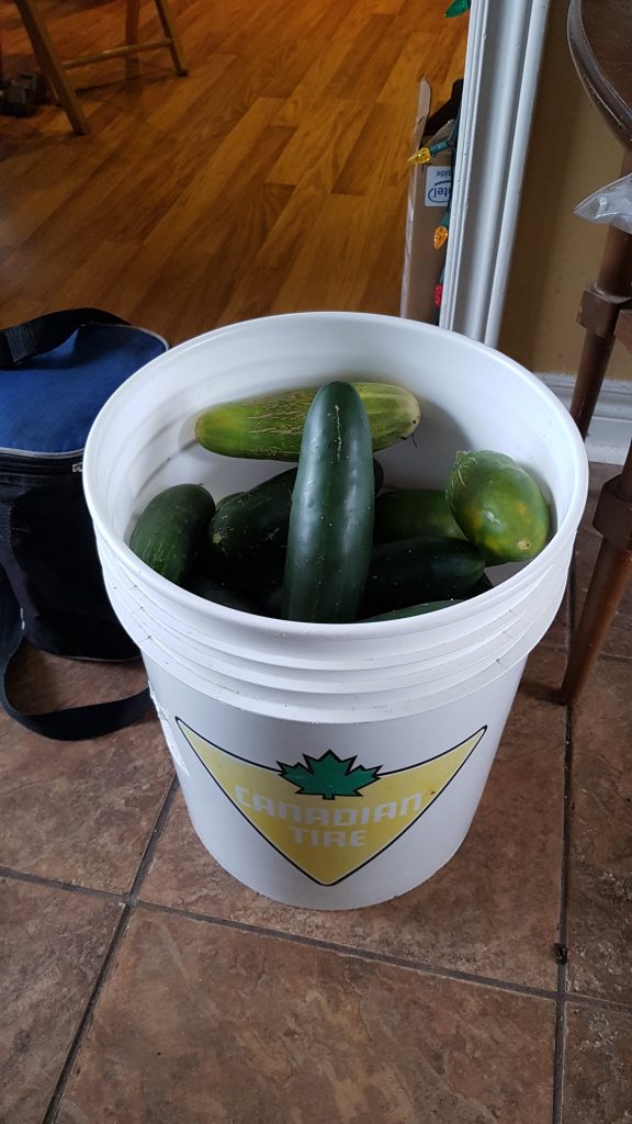 Cucumber is my favorite summer veggie.  I was able to harvest continually about 4x 5 gallon-bucket of fresh cukes.