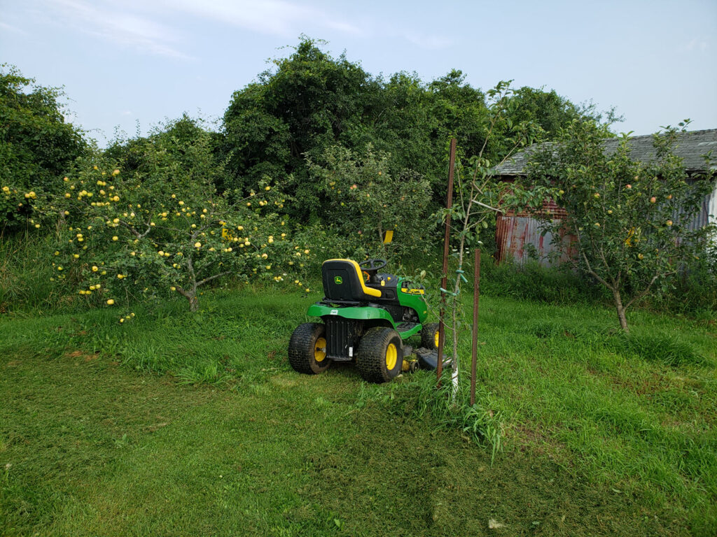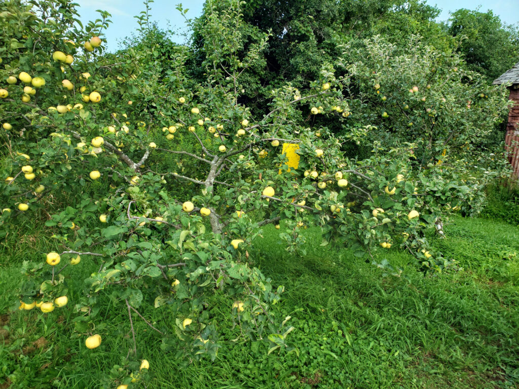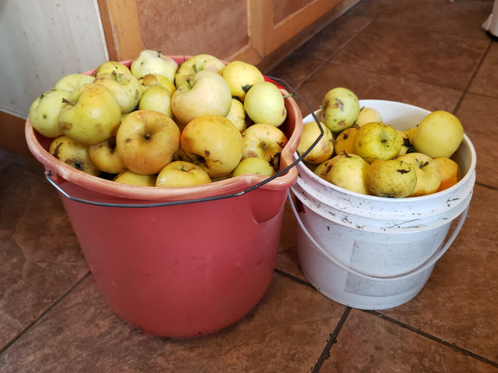 About 40% were dropped prematurely, but they were not wasted: the chickens love pecking at the apples.