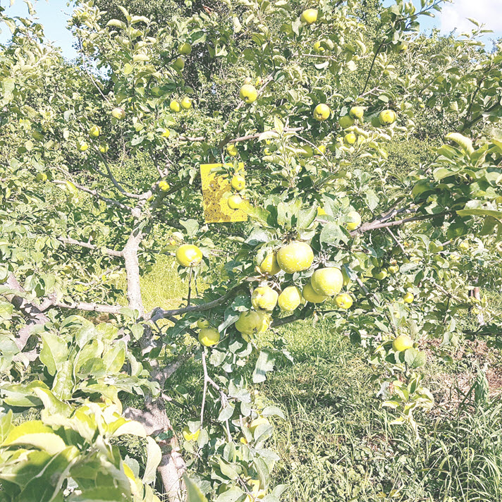 I am also using a yellow sticky sheet to trap bugs and I have been spraying kaolin clay/water mix to protect the tree. |