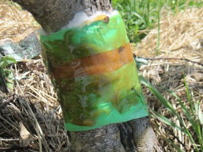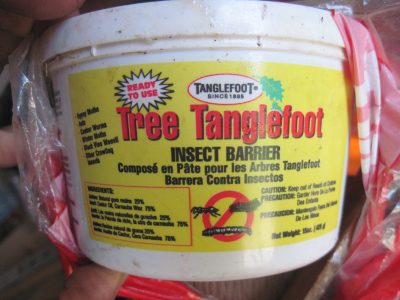 - Apply insect barrier along the tree trunk, i.e. Tanglefoot